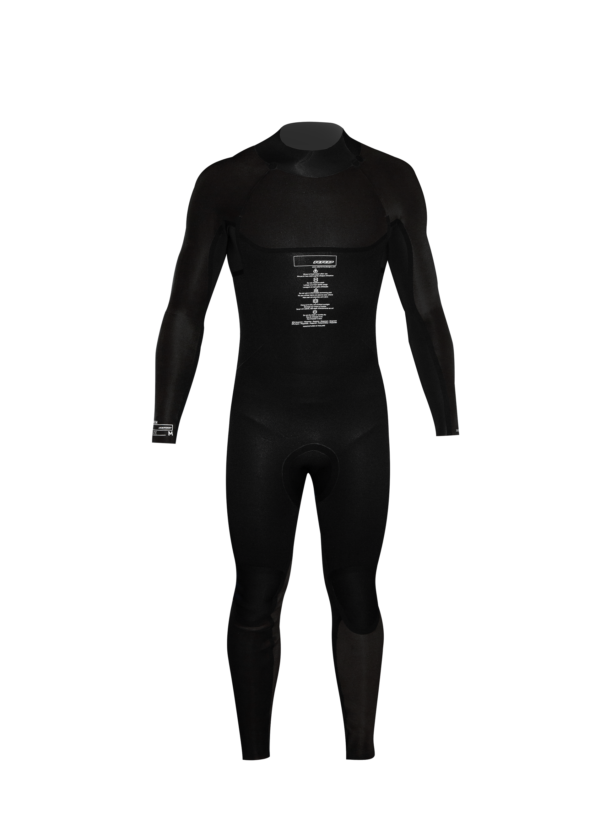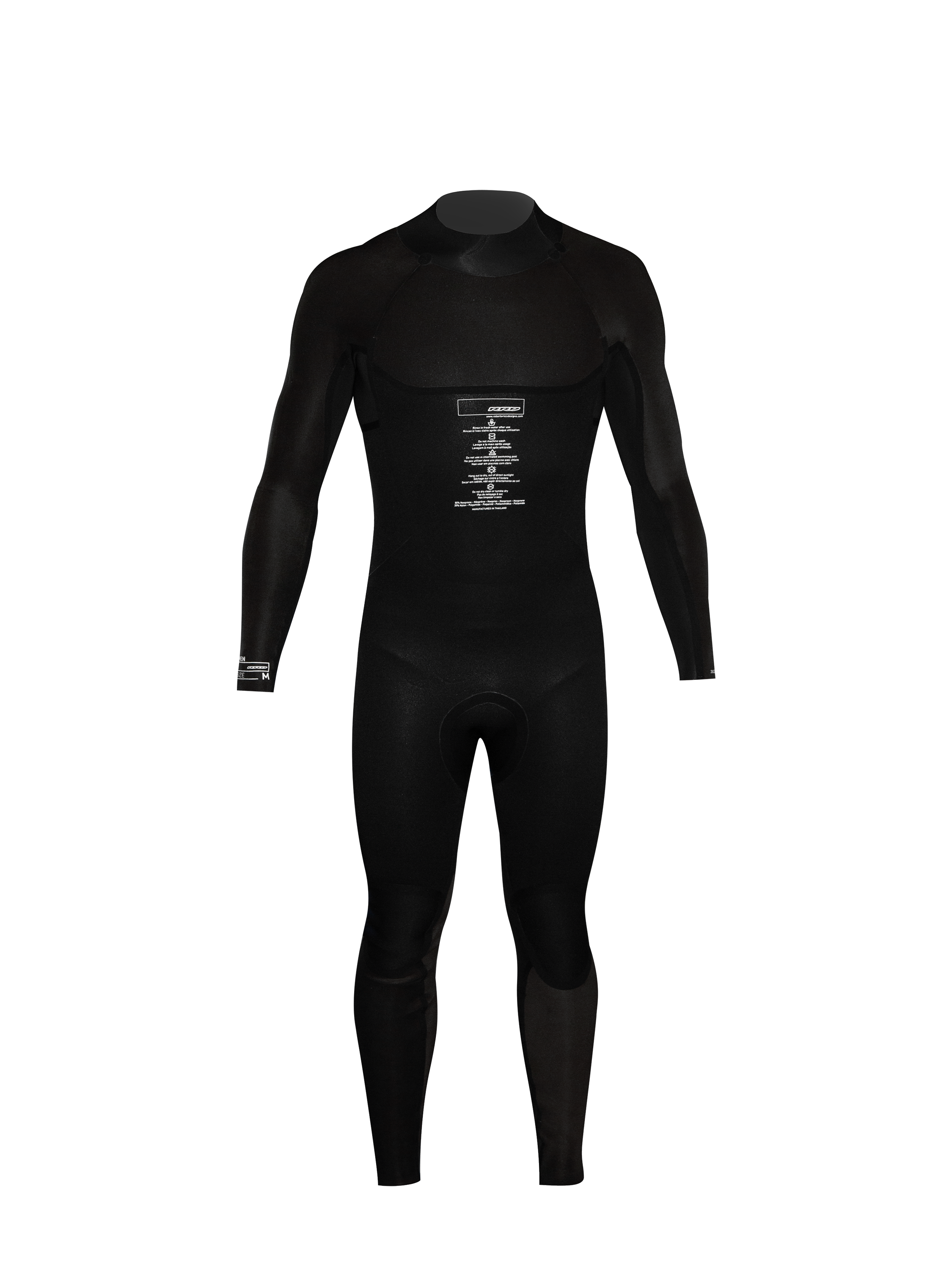 - Spessore 5/4/3 mm: più spesso su busto e cosce per garantire calore, più sottile su braccia e zone di flessione per non limitare i movimenti.