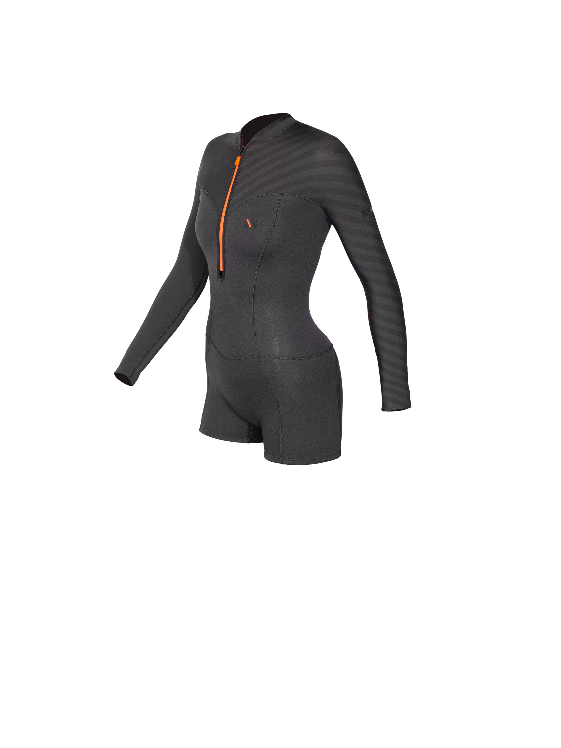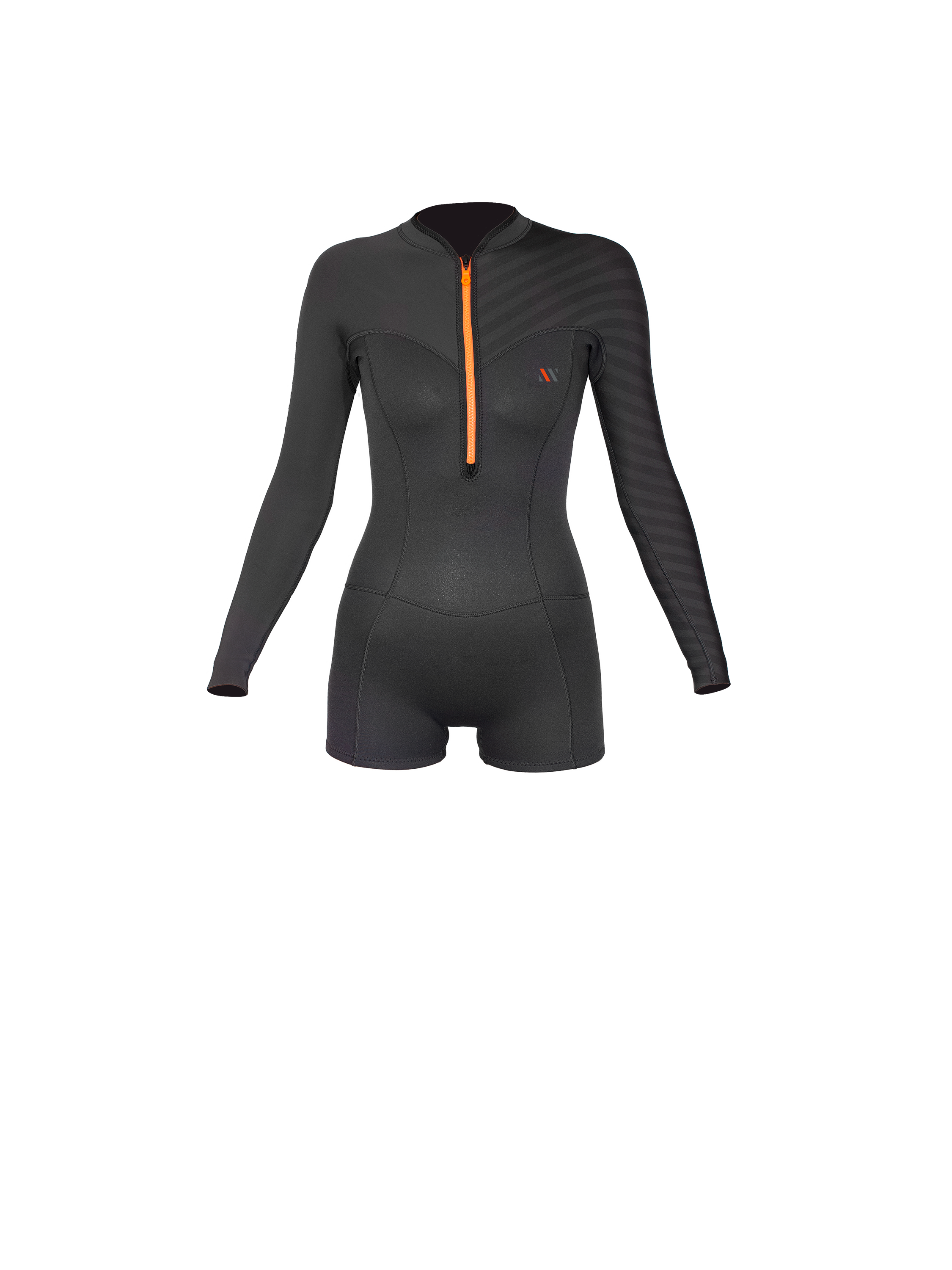 - Il front zip verticale è pratico e scenografico: comodo da aprire e chiudere anche in spiaggia, con un look unico rispetto alle mute standard.